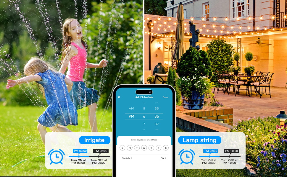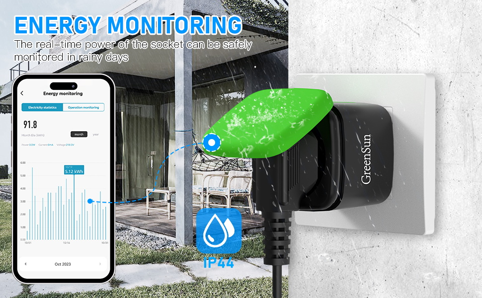 - Pour l'extérieur - Grâce à son indice IP44, cette prise intelligente est protégée contre les intempéries.