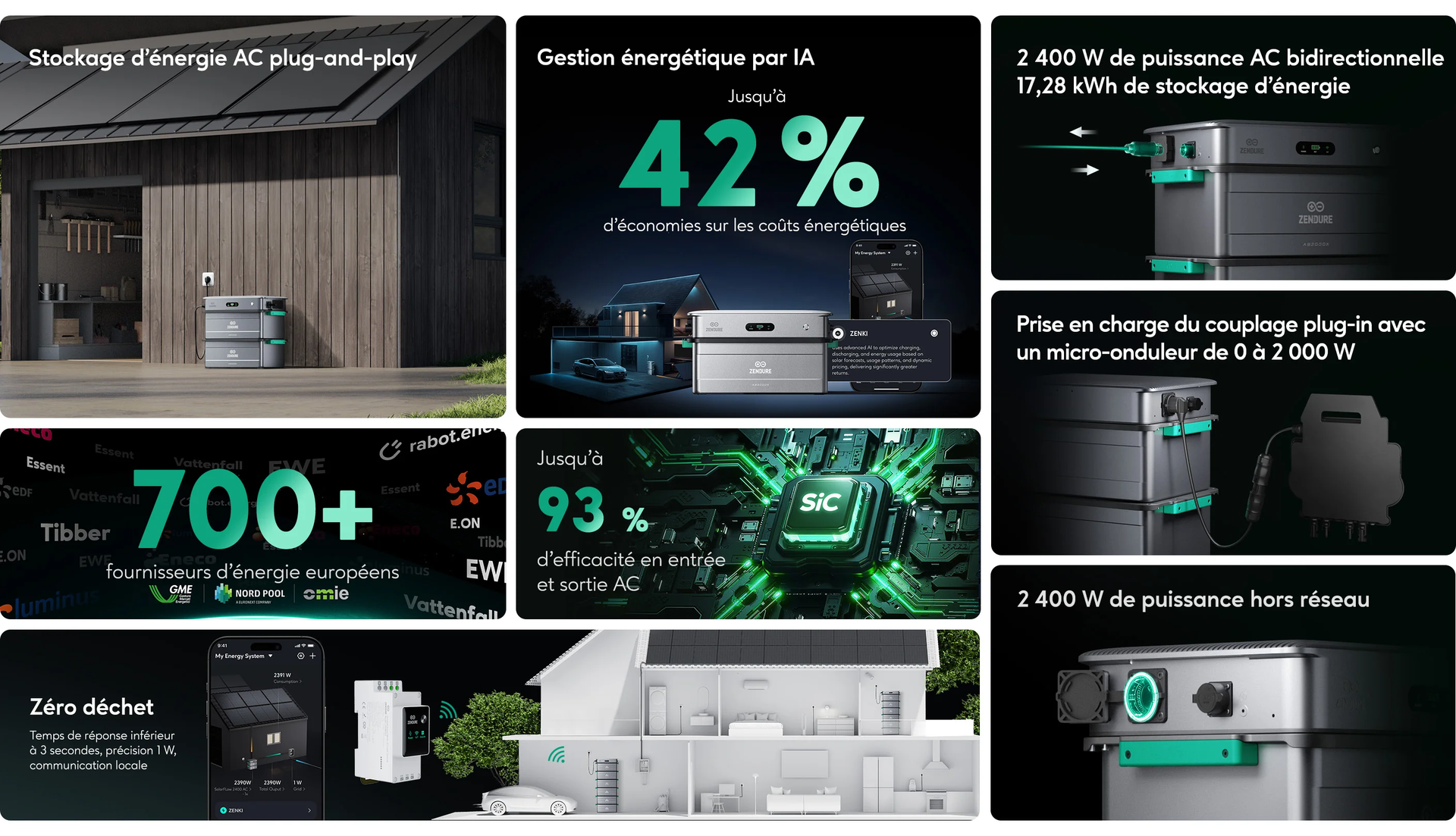 Grâce à la technologie des semi-conducteurs de troisième génération, notre système atteint jusqu’à 93 % d’efficacité AC en cycle complet, optimisant ainsi vos économies d’énergie et améliorant votre efficacité énergétique.*Données basées sur les tests en laboratoire de Zendure.