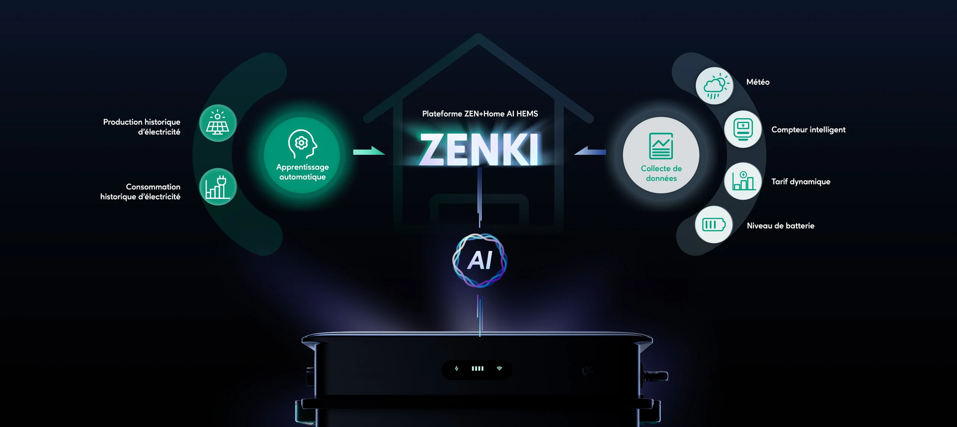 Le HEMS, notre système de gestion énergétique piloté par IA, apprend vos habitudes de consommation et analyse des facteurs tels que les prévisions météorologiques, la capacité de la batterie et les tarifs dynamiques afin de développer des protocoles de gestion énergétique sur mesure. En s’adaptant en continu à votre usage, le HEMS vous permet d’économiser jusqu’à 42 % sur votre facture d’énergie, mois après mois.**Données basées sur les tests en laboratoire de Zendure sous un modèle de tarification dynamique de l’électricité. Les économies réelles peuvent varier en fonction des tarifs locaux, de la configuration du système et des habitudes de consommation énergétique du foyer.