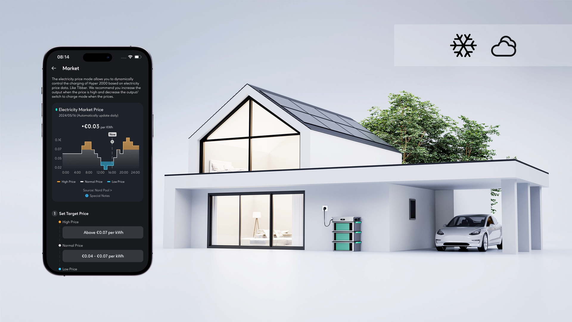 Connectez-vous facilement à plus de 700 fournisseurs d’énergie européens dans 32 marchés. Le HEMS optimise votre consommation d’énergie en tirant pleinement parti des tarifs dynamiques, vous permettant ainsi de maximiser vos économies.Veuillez noter que le client est responsable des frais liés à l'utilisation de plateformes de services d’électricité tierces.